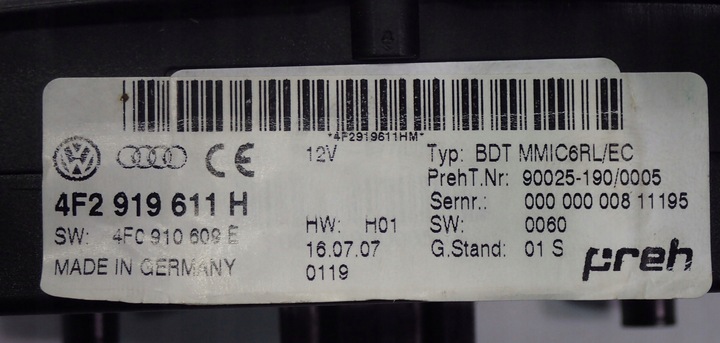 4F2927225C - AUDIWystępuje pod nazwami: Przeł. elektromechanicznego hamulca parkowania -epb-Wyświetlacz poszczegolne czesci moduł obsługiModuł obsługi poszczegolne czesci