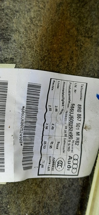 Потолок серая светлая audi q5 8r 8r0867501m