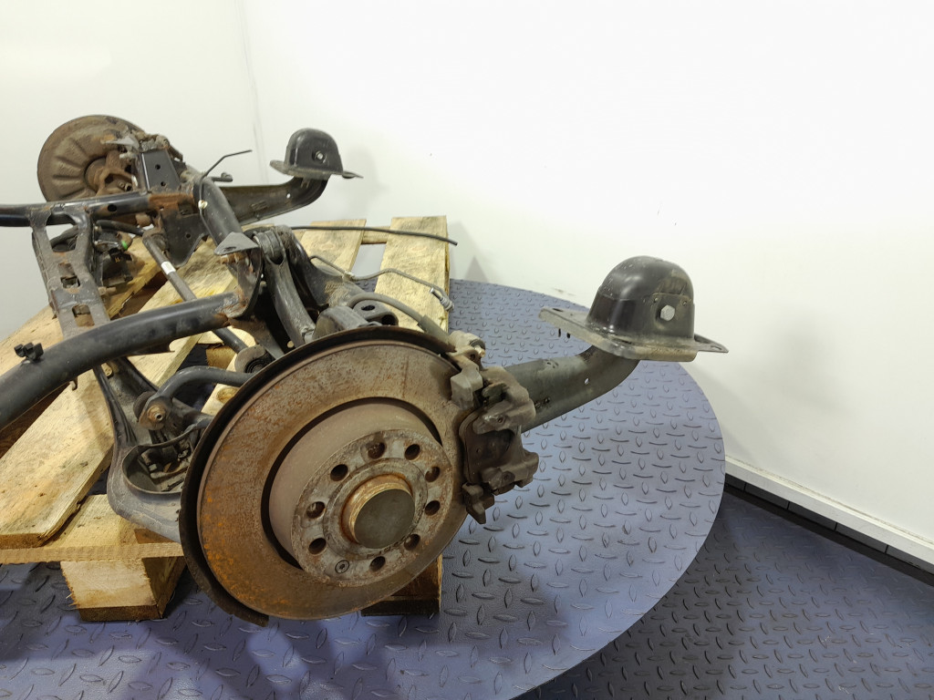 Opis: wersja z tarczami, z drążkiem stabilizatora, z piastą, z wahaczem, z tarczą kotwiczą, z zaciskami elektrycznymi, korozja, -jakość B && VW GOLF VII LIFT HB 5D SANKI BELKA ZAWIESZENIA TYŁ 5Q0505315G