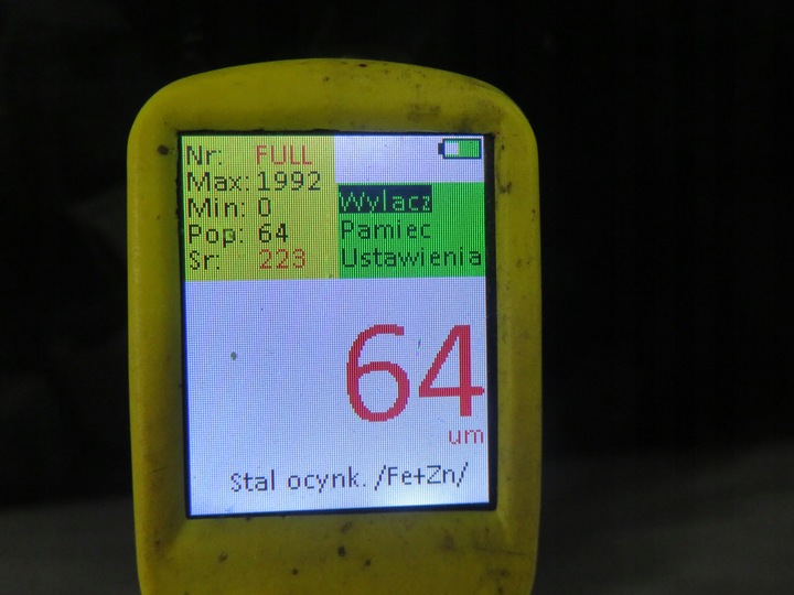 - DRZWI PRAWY TYL W KOLORZE CZARNYM, KOSTKA 11 PIN, KOD LAKIERU - KTVD, GRUBOSC LAKIERU - 64 UM, ODPRYSKI I ZARYSOWANIA LAKIERU