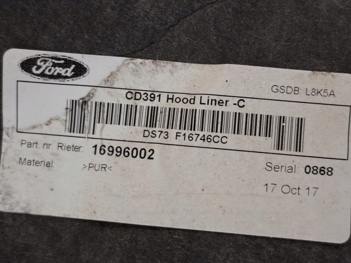 | Каталожный номер запчасти: | WYGŁUSZENIE, IZOLACJA, DŹWIĘKOWA, MASKI, POKRYWY, SILNIKA, FORD, MONDEO, V, MK5, 17r |