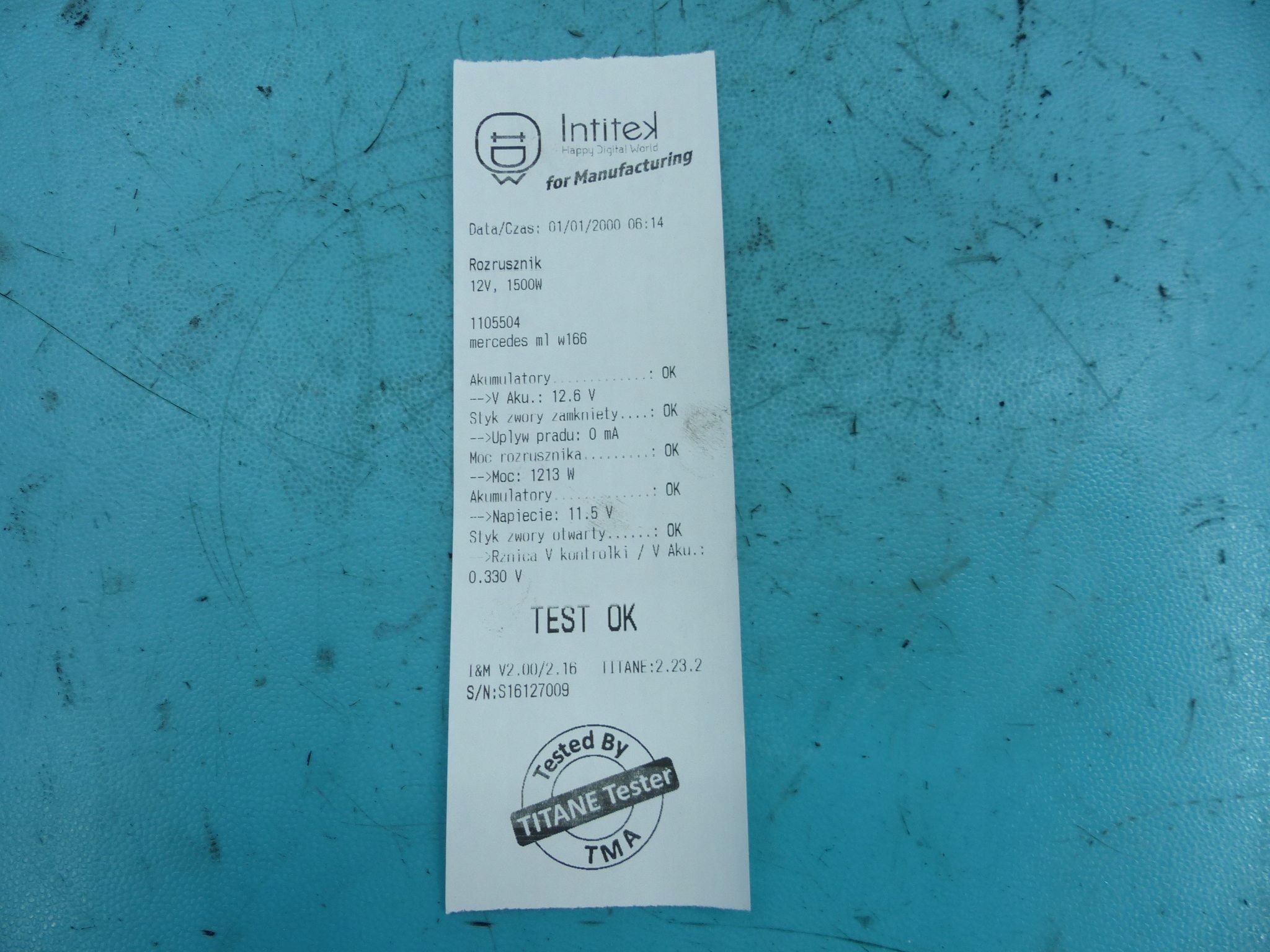 - Dodatkowe informacje: Testowany na stole probierczym Titane,