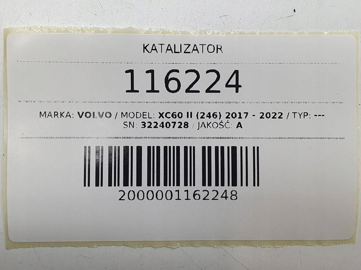 Przedmiot aukcji: KATALIZATOR FILTR DPF 2.0 DIESEL MILD HYBRID VOLVO XC60 II S90 V90 2.0 D 32240728