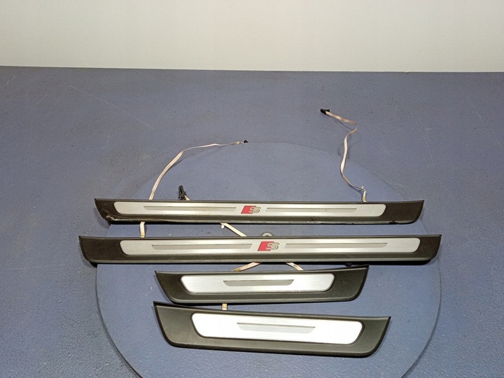 Opis: 4 sztuki: 4K8947406A, 4K8947405A, 4K8947423, 4K8947424, nadpalenie plastiku i przewodów widoczne na zdjęciach -jakość C && AUDI A7 C8 LISTWY OZDOBNE PROGÓW KPL 4K8947406A