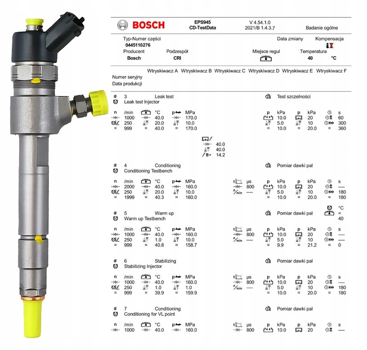 ✅ Wydruk parametrów ze stołu probierczego, kontrolno-pomiarowego firmy Bosch DCI 700 lub EPS 708