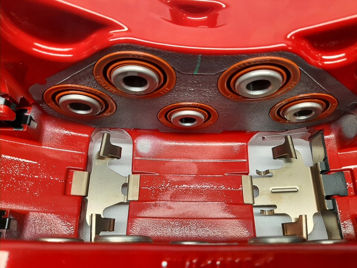 Zaciski hamulcowe AUDI CERAMIC AKEBONO czerwone, lewy i prawy przód do
