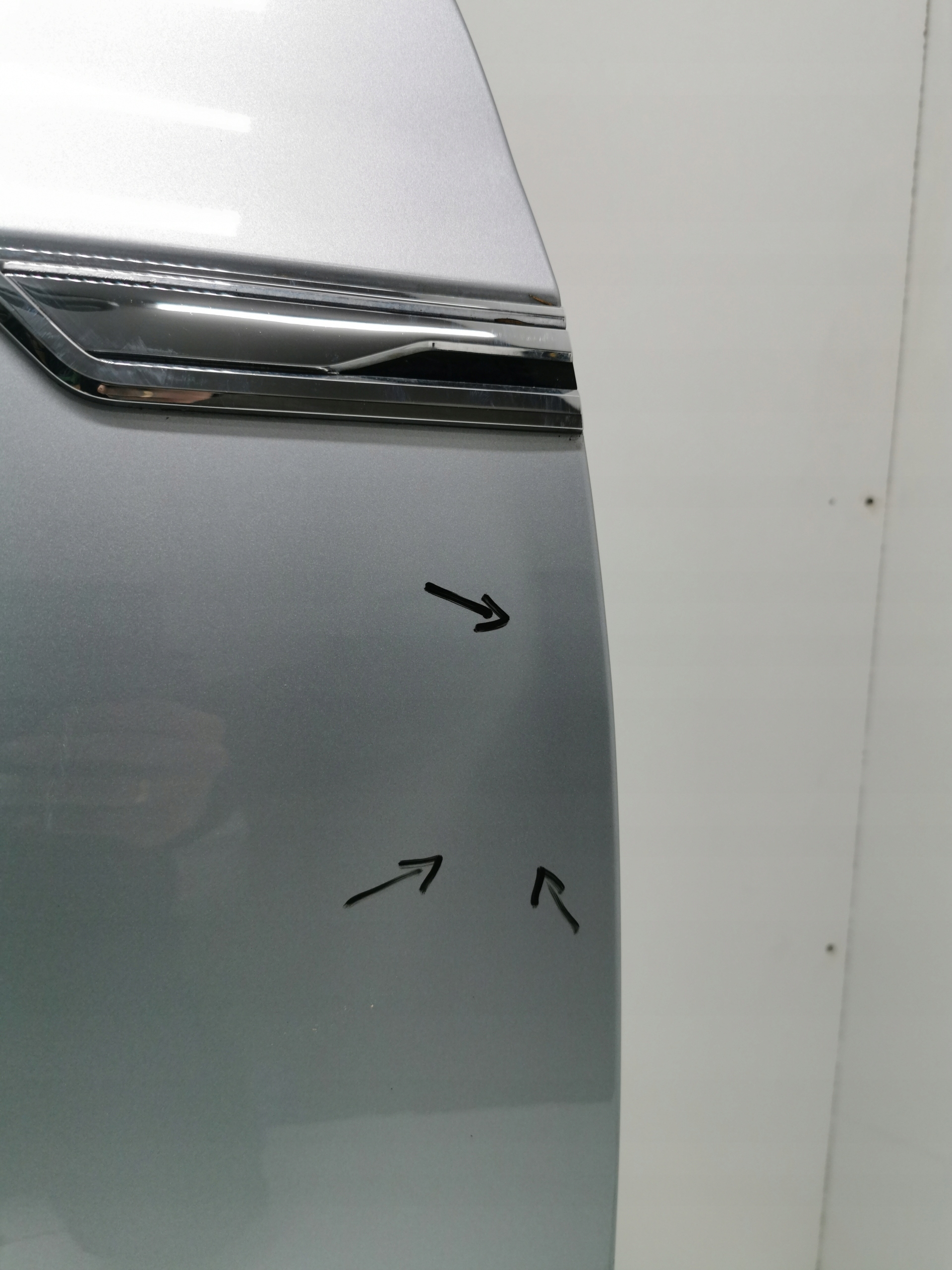 - PRZEDNIE DRZWI POSIADAJĄ OTARTY DELIKATNIE KANT I WGNIOTKE ZAZNACZONĄ STRZAŁKAMI