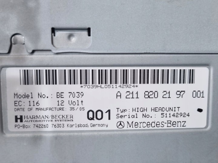 | Оригинальный каталожный номер: | A2118202197, Radio samochodowe, Mercedes-Benz E-Class W211/S211, SKU109540 |