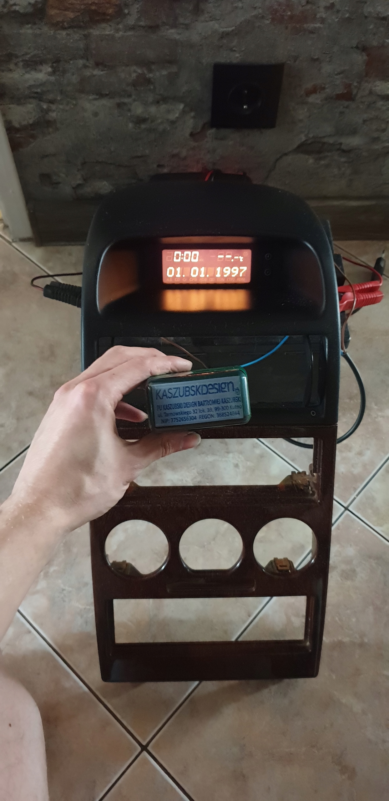 Panel drewnopodobny wizualnie ładny choć oczywiście znajdą się zarysowania czy jakieś małe "odkształcenia" głównie w okolicy radia. Troszę gorzej wygląda ta górna część, czarna, tam jest więcej rysek (głównie tutaj w okolicy wyświetlacza). Technicznie mocowania są wszystkie, ale jedno mocowanie było podklejane - sam je podkleiłem, było lekko nadpęknięte więc postanowiłem to naprawić. Większy kłopot jest z mocowaniami wyświetlacza, których... tak naprawdę nie ma. Wyświetlacz jest wklejony/wspawany w konsolę, siedzi to sztywno, jest okej, ale "problem" pojawi się u osób, które będą chciały zamontować inny wyświetlacz - będzie to trzeba po prostu popsuć i wkleić swój. Tutaj jak widać jest wyświetlacz TID i jest on w 100% sprawny, także można tak naprawdę tylko wypiąć wtyczkę i zamontować całość. Załączam zdjęcie z testów wyświetlacza, jest okej, wszystkie piksele bardzo ładnie świecą, żarówki również sprawne. Opis jak zawsze mocno pedantyczny poparty odpowiednią ilością zdjęć do własnej oceny.