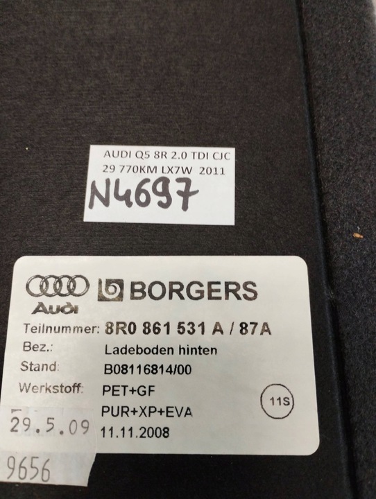 Audi Q5 8R PODŁOGA BAGAŻNIKA 8R0861531A