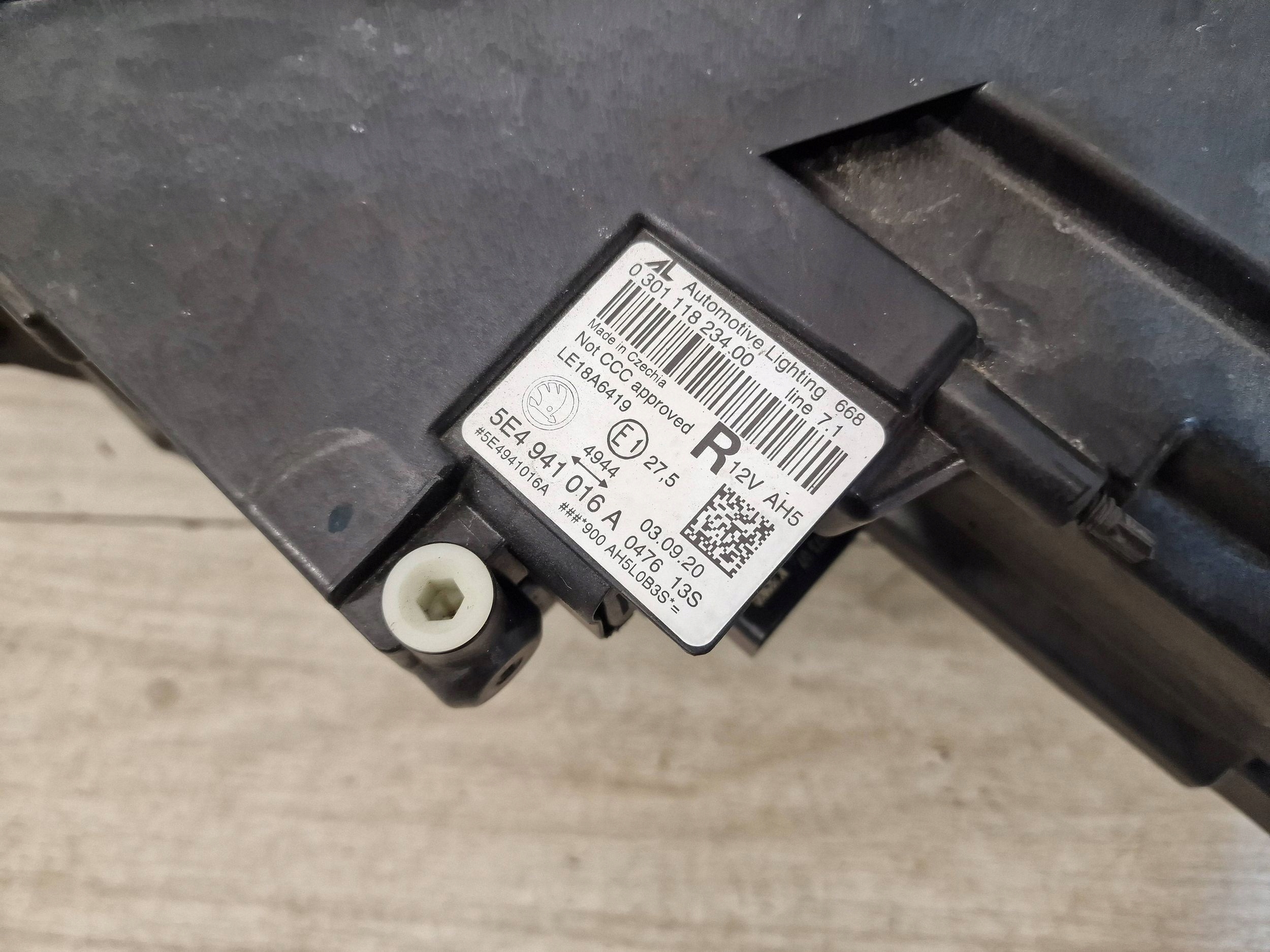 Reflektor Lampa Crystal Full Led Europa Oryginał Skoda Octavia IV 4 5e stan jak na zdjęciu uszkodzone szkło w dolnej części zaznaczone strzałka wersja europejska
