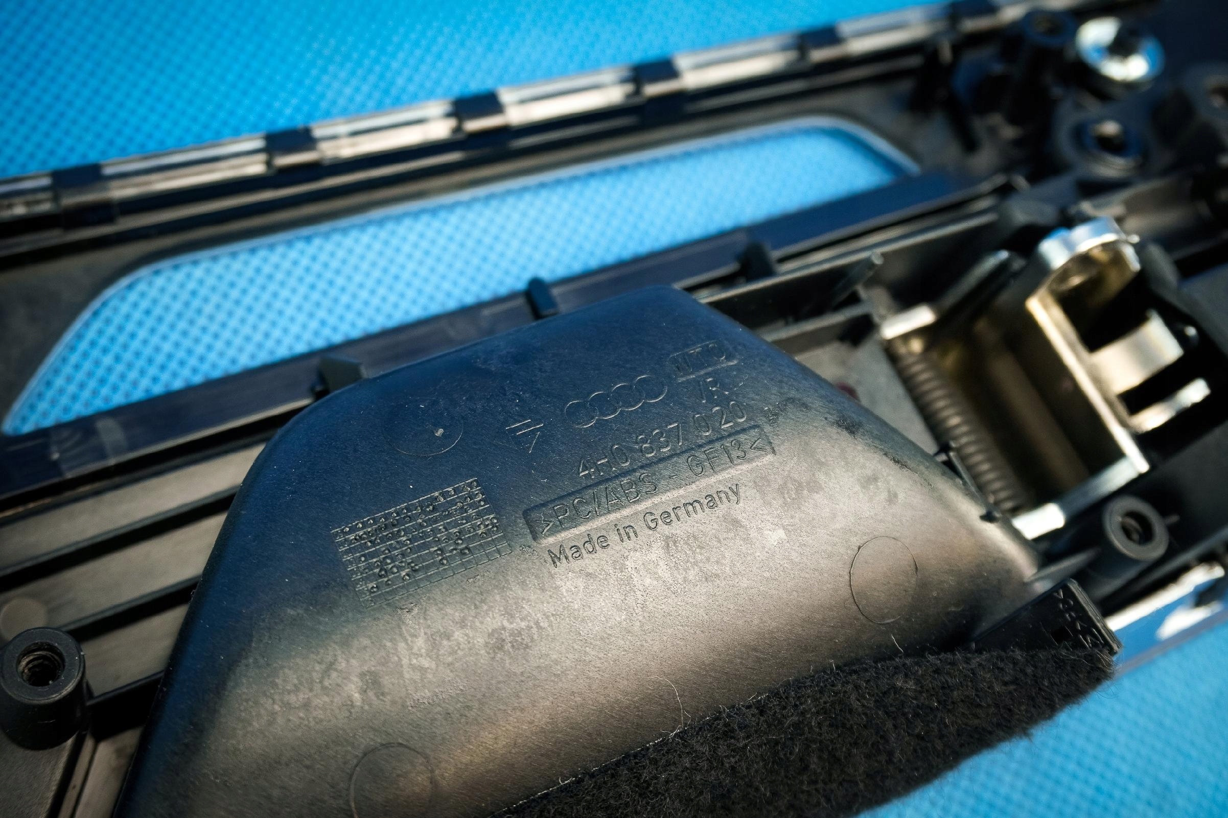 Przedmiotem sprzedaży jest listwa ozdobna z podświetleniem Ambiente i klamką do prawych przednich drzwi do Audi A8/S8 4H