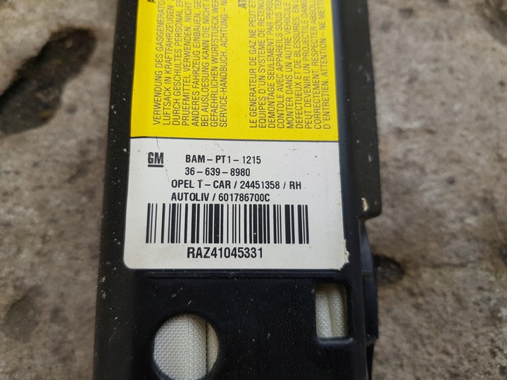 Каталожный номер запчасти: | 24451358, RH, 24460761, PODUSZKA, POWIETRZNA, BOCZNA, DACHU, DACHOWA, AIRBAG, PRAWA, PRZEDNIA, PRAWY, PRZÓD, CZUJNIK, SENSOR, UDERZENIA, UDERZENIOWY, KURTYNY, BOCZNY |
