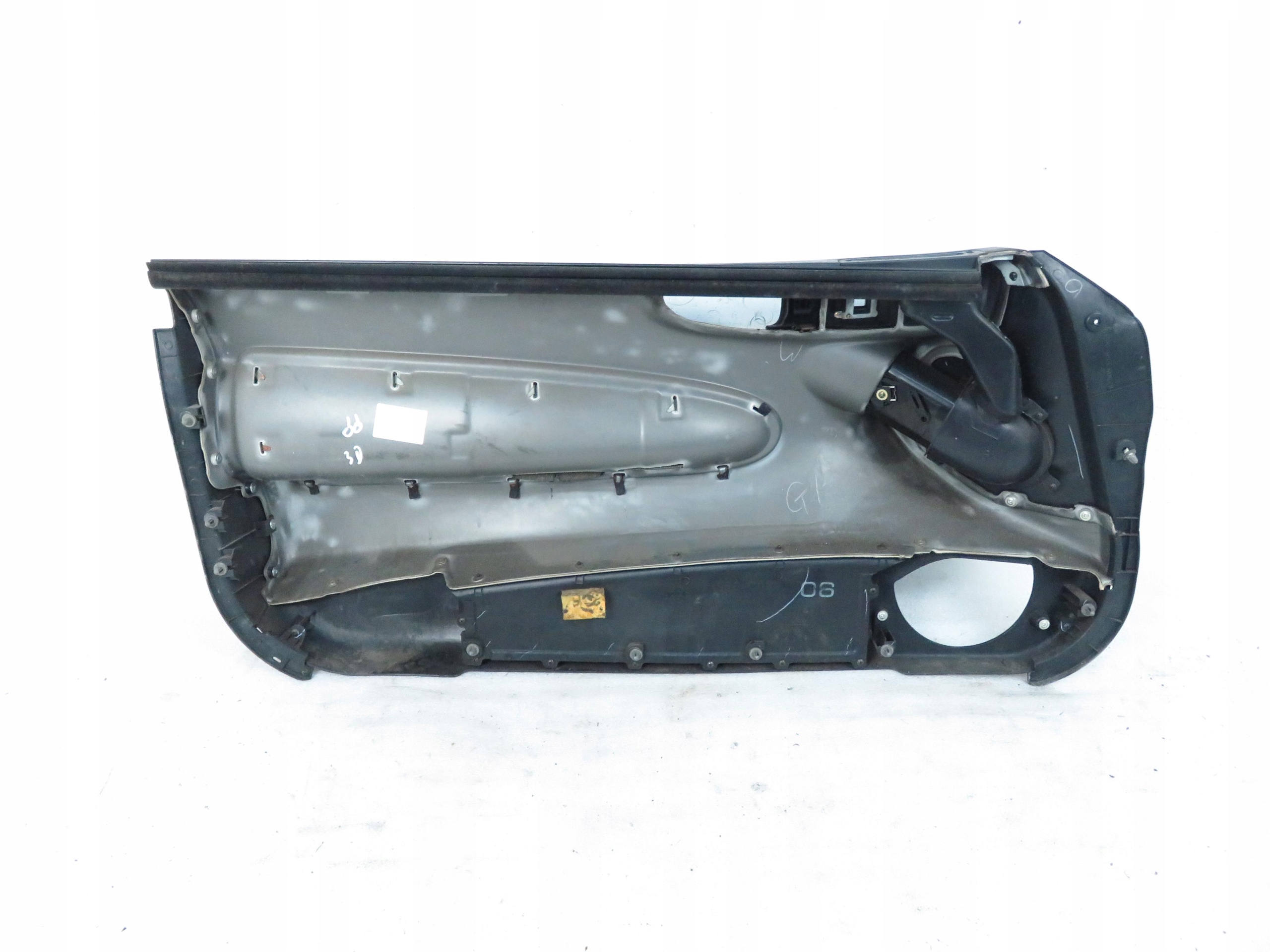 - BOCZKI DRZWI PLASTIKOW, TAPICEROWANE SKORA W KOLORZE CZARNYM , W CZESCI NAD PODLOKIETNIKIEM TAPICEROWANY MATERIALEM.