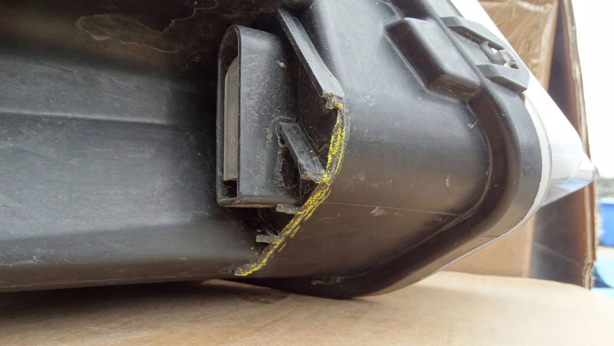 Lampa używana, oryginalna, posiada odpryski na szkle oraz uszkodzone uchwyty jak na zdjęciach (dokręcona reparaturka).