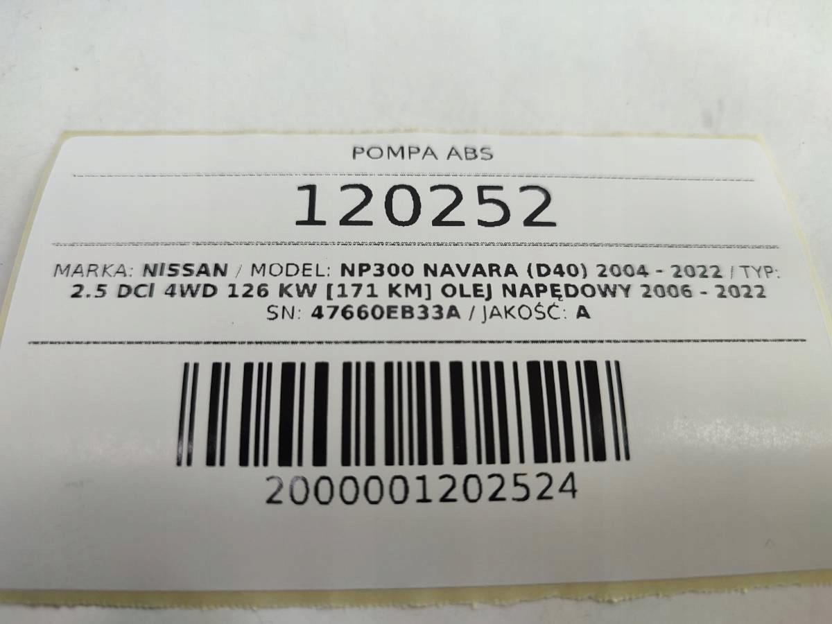 Przedmiot aukcji: POMPA HAMULCOWA ABS NISSAN NAVARA III D40 2.5 DCI 47660EB33A
