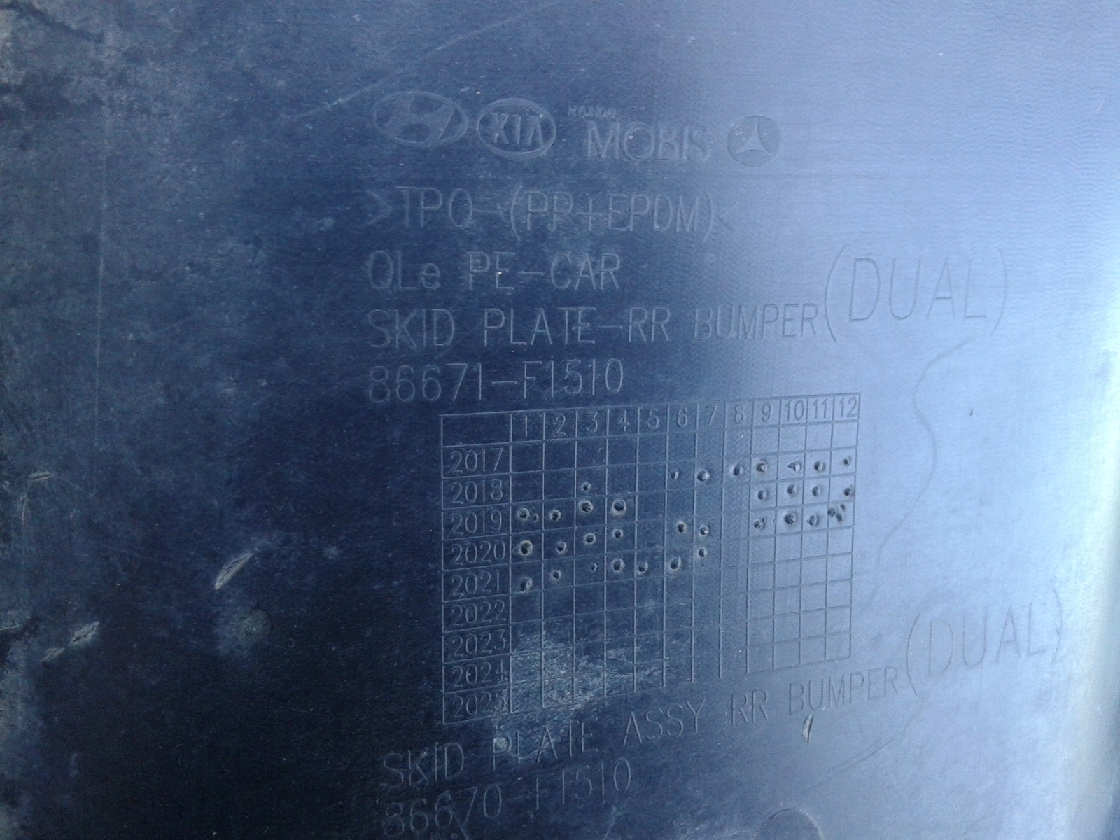 Listwa / dyfuzor / spoiler / dokładka zderzaka tył Kia Sportage IV 4 - roczniki 2015-2022 - numer 86671-F1510 - wersja europejska (stan jak na foto - część posiada normalne ślady użytkowania oraz małe pęknięcie). Posiadam również inne części do tego modelu dostępne na moich aukcjach.