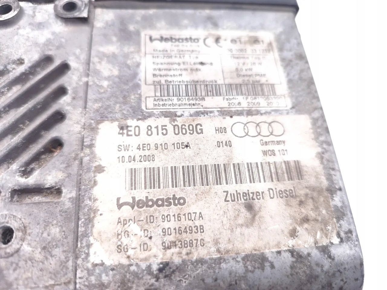 Audi A8 Ogrzewanie postojowe Webasto 3.0 TDI quattro Diesel 171kW (233 HP) 4E0815069G 2008 Saloon 4/5dr (03-10)