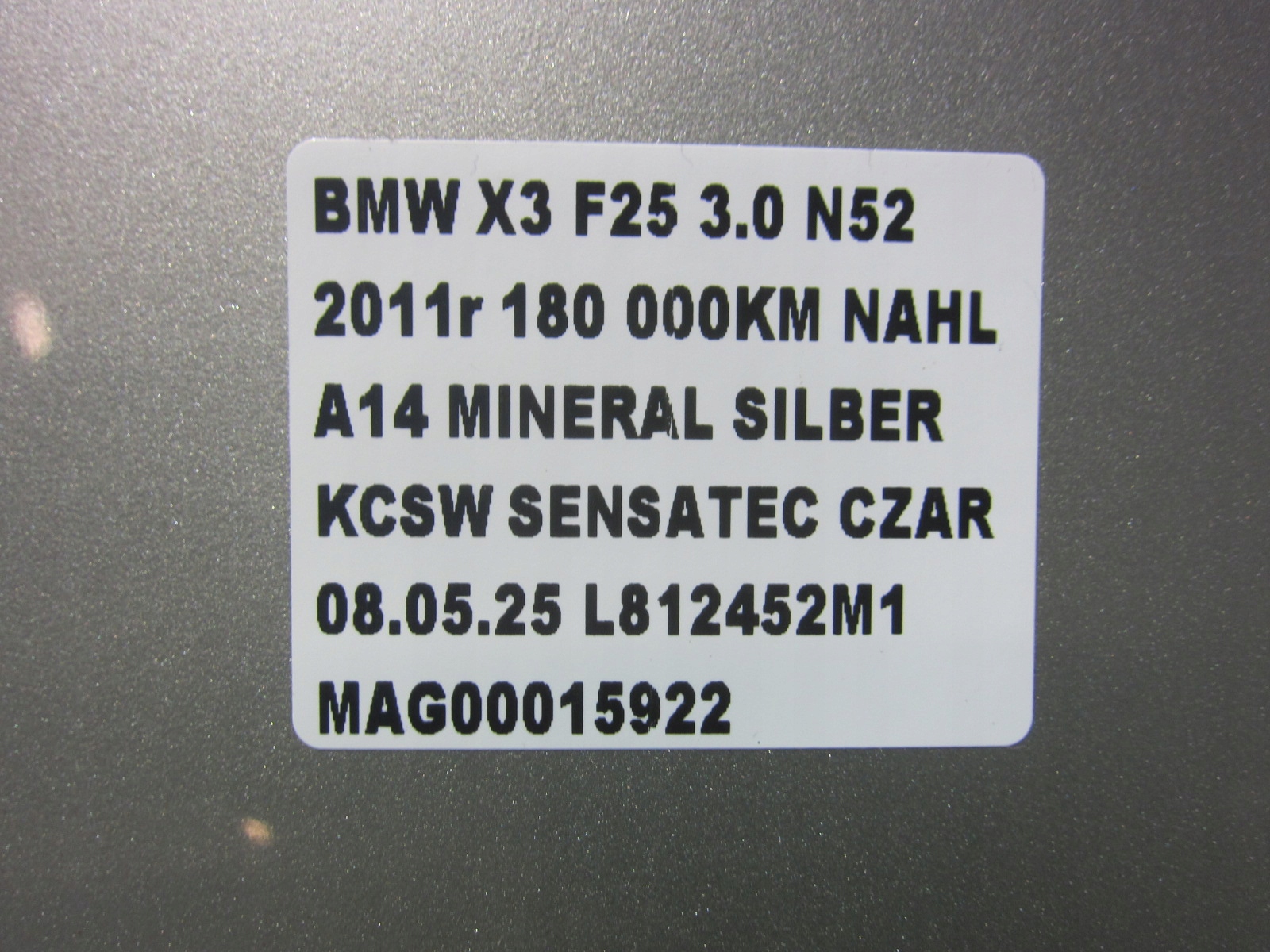 | Каталожный номер запчасти: | BMW X3 F25 LEWE TYLNE LEWY TYŁ DRZWIA14 MINERALSILBERSREBRNE A14/7 |
