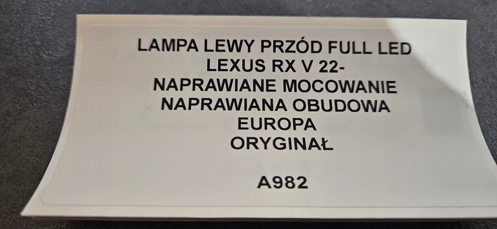 LAMPA LEWY PRZÓD FULL LED LEXUS RX V 22- EUROPA ORYGINAŁ