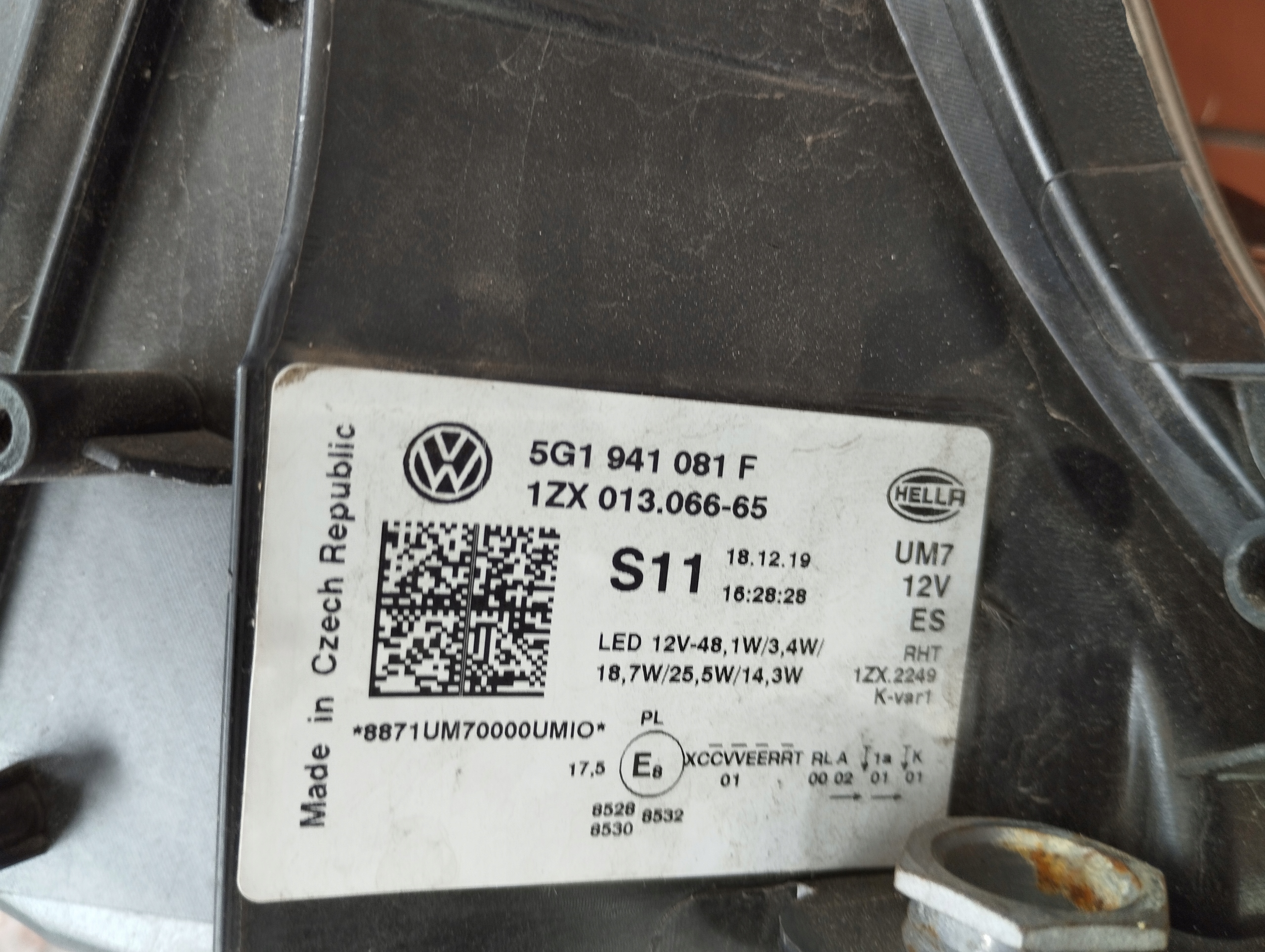 Lampa lewa Full LED VW Golf e-Golf VII 7 GTE LIFT 2016-20 5G1941081F. Lampa posiada klejone boczne mocowanie.