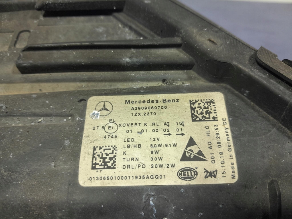 Opis: oryginał, wersja europejska, klosz przyciemniony folią, uszkodzone mocowania, zarysowania, widoczne ślady nadpalenia, uszkodzenia widoczne na zdjęciach, do naprawy luz na części, bez możliwości zwrotu, -jakość C && MERCEDES AMG GT 4 DOOR W290 REFLEKTOR PRZÓD PRZEDNI LEWY LED A2909060700