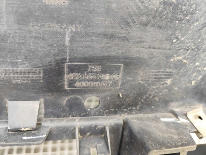 | Каталожный номер запчасти: | AUDI A8 D3 4E0 W12 ATRAPA GRILL POD RADAR ACC DISTRONIC 4E0853651AB |