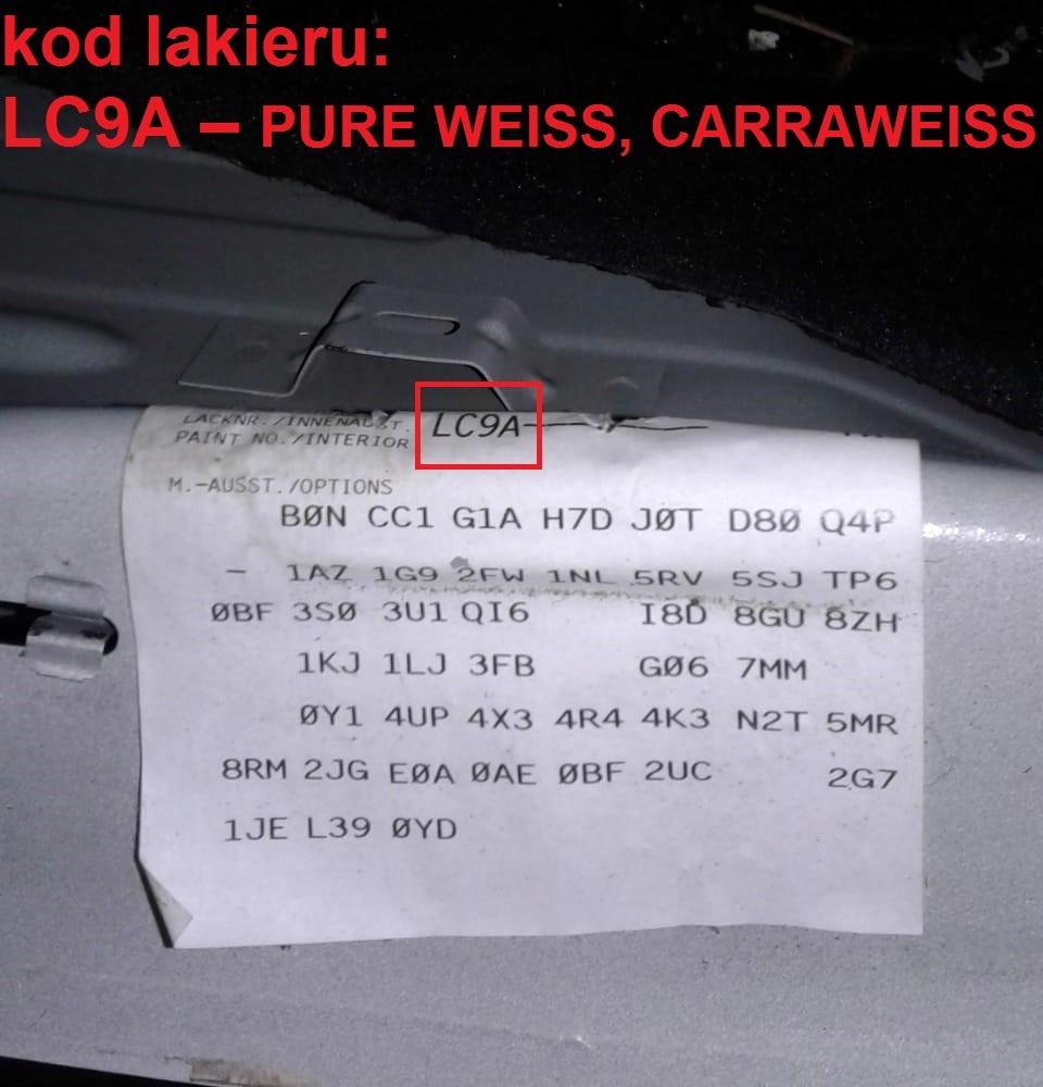 kod lakieru: LC9A – PURE WEISS, CARRAWEISS (czysto biały niemetalizowany)