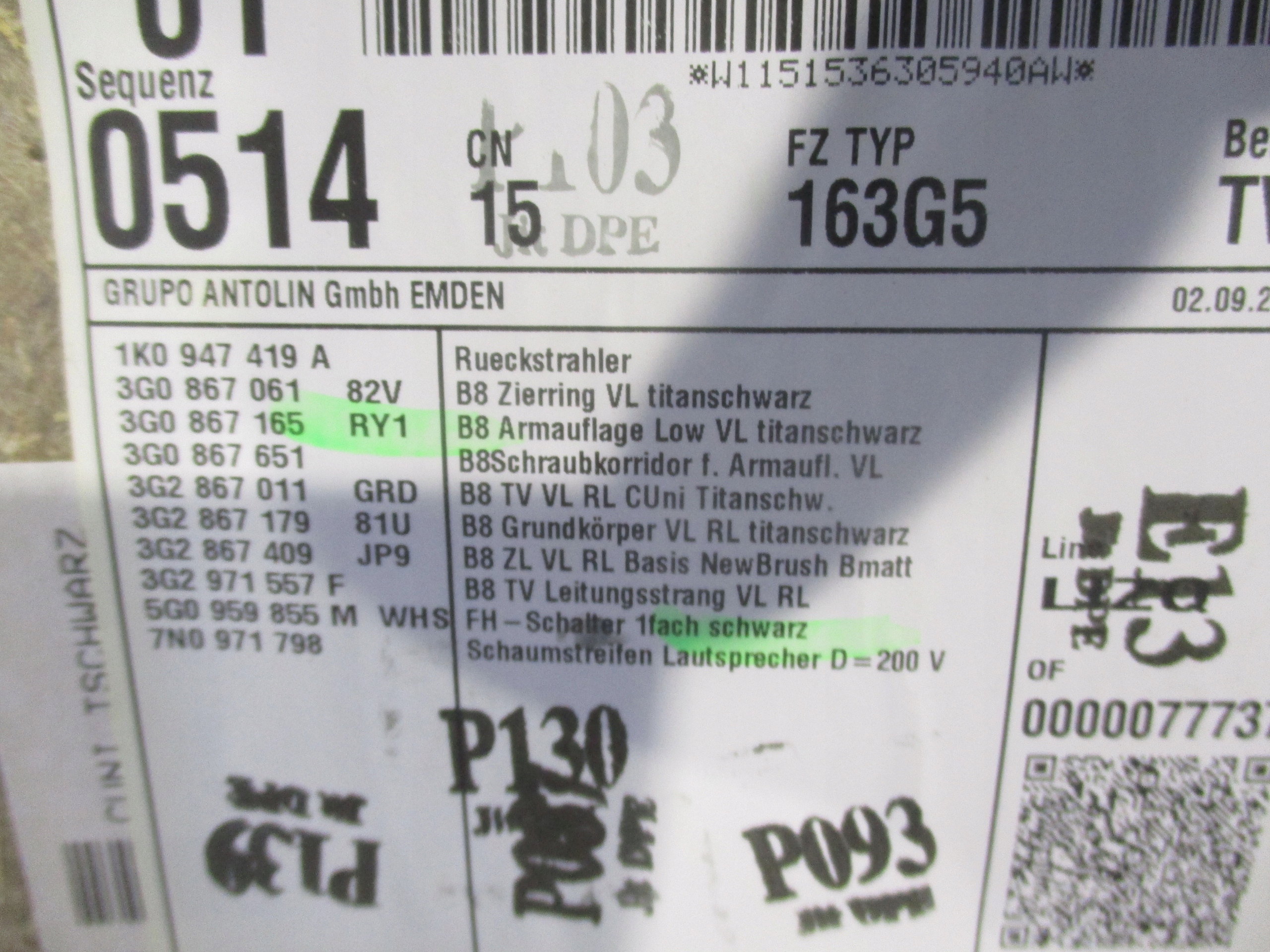 Производитель запчасти: | volkswagen оригинальный номер |