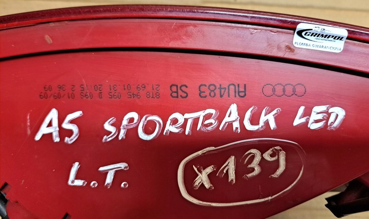 | Каталожный номер запчасти: | AUDI A5 8T SPORTBACK LAMPA TYLNA LEWA 8T8945095D (X139) |