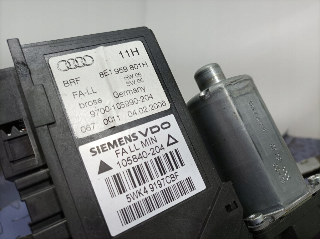 Opis: elektryczny, z silniczkiem nr oem 8E1959801H,z ramką szyby oraz szybą, -jakość B && AUDI A4 B7 PODNOŚNIK SILNICZEK RAMKA SZYBY PRZÓD PRZEDNIA LEWA