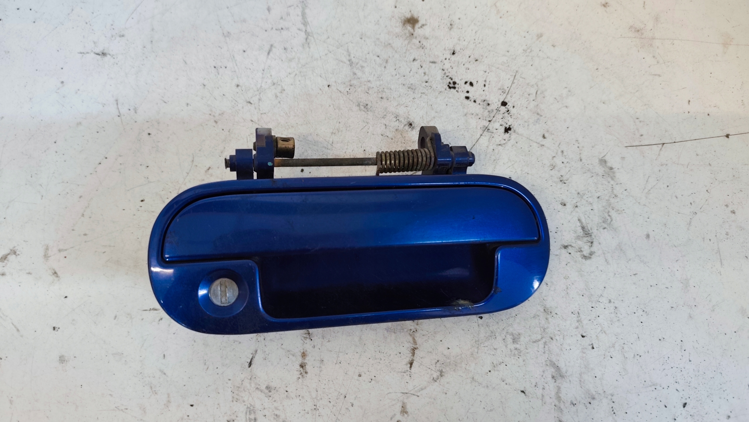 ➡️ Oryginalna zewnętrzna klamka drzwi, z demontażu, przeznaczona do prawych przednich drzwi Honda HR-V I. Montowana na zewnętrznej stronie drzwi pasażera – umożliwia mechaniczne otwieranie drzwi od zewnątrz.