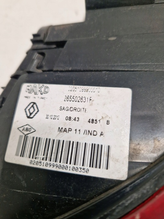 Renault clio iv 2014 зад сторона правая лампа задняя