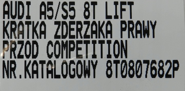 Каталожный номер запчасти: | A5 8T LIFT S5 COMPETITION KRATKA ATRAPA HALOGENU ZDERZAKA PRAWA PRAWY PRZÓD 8T0807682P |