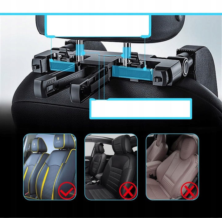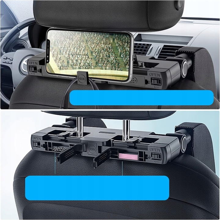 🚗🚗 Łatwy montaż i oszczędność miejsca - nie wymaga narzędzi, może być łatwo wykonany i zagłówek samochodowy. Podwójna klamra bezpieczeństwa znacznie zwiększa stabilność i bezpieczeństwo, a gdy nie jest używana, można ją zdjąć, co pozwala zaoszczędzić dużo miejsca w samochodzie.