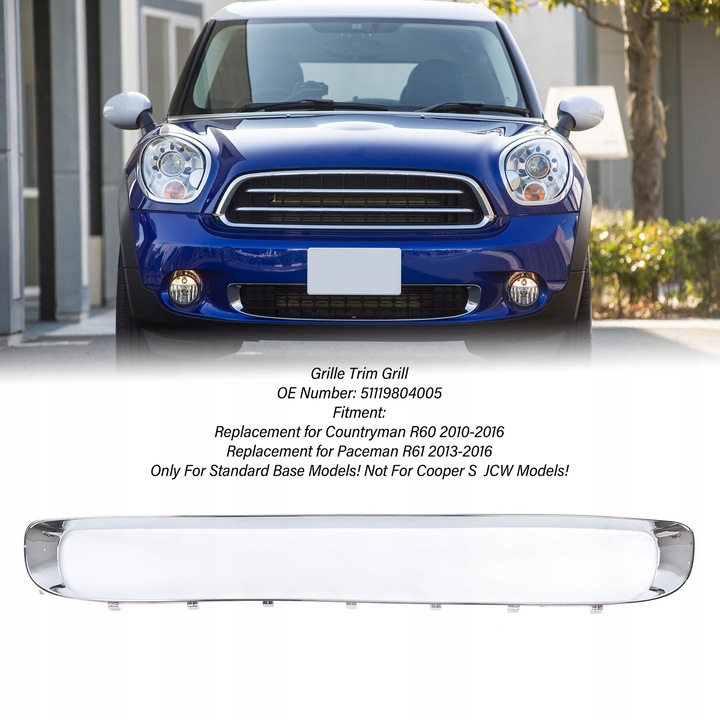 1. Obowiązujące modele: Grill Grille Grill jest zamienny dla Counthanan R60 i zastępstwo dla Pacemana R61, ale nie pasuje do modeli Coopera S JCW.