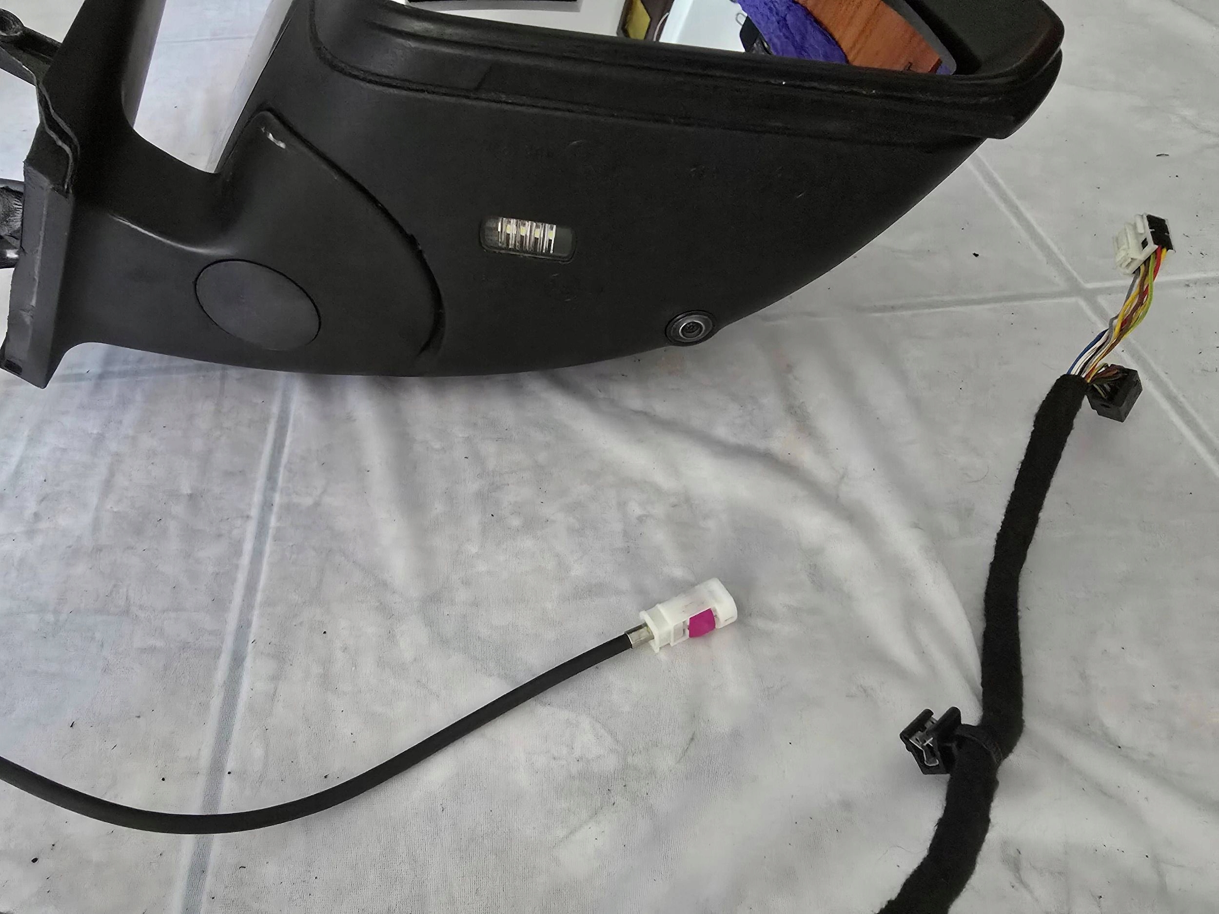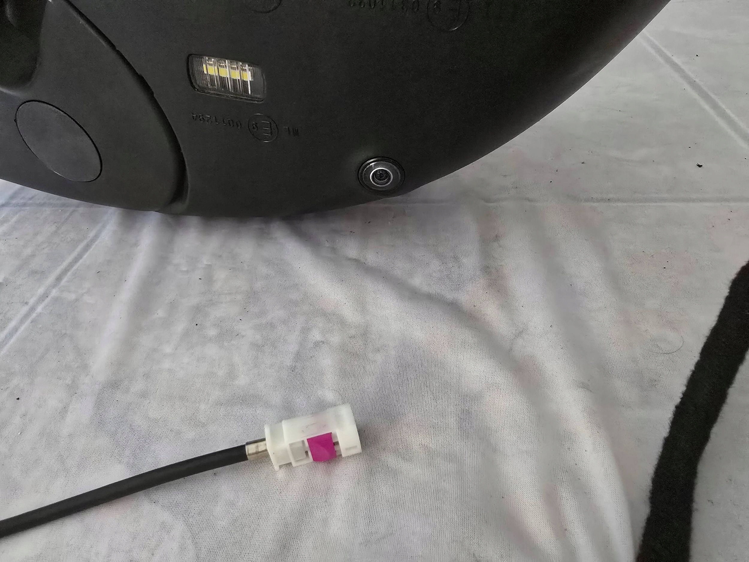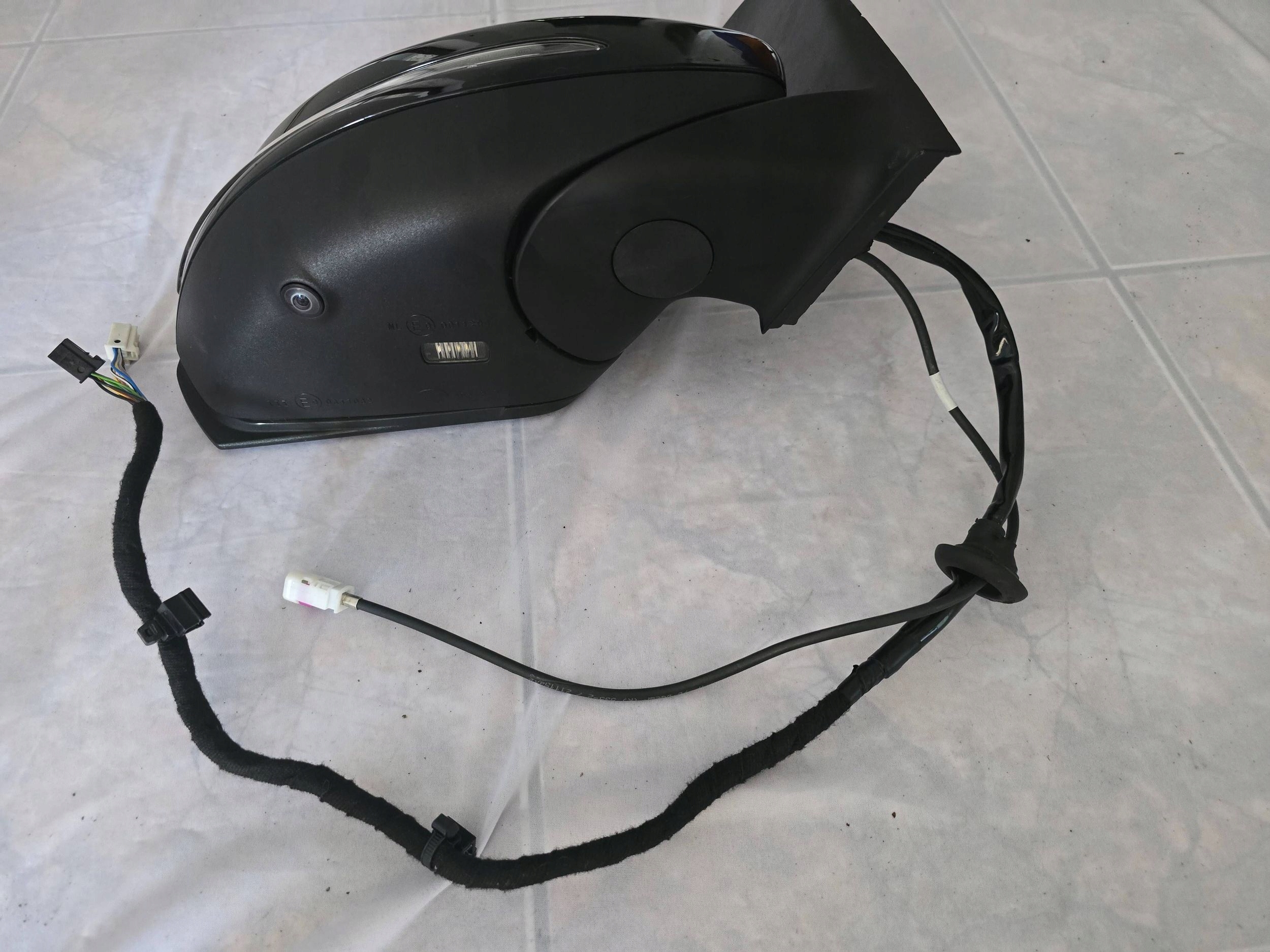 Right side mirror for a Mercedes W447 Vito V-Class (2014-2024). Used, complete, and functional. Condition as shown in the photos. This mirror features a parking assist system (a 360-degree camera)—electrically foldable, electrically adjustable, heated, memory, and illuminated (with a light on the bottom of the mirror). It also includes a turn signal indicator and two connectors: a black one with 7 wires and a white one with 8 wires. The total wiring harness includes 145 wires plus the camera's HSD cable.Camera number: A447 905 39 03Lusterko Mercedes W447 Vito V- klasa 2014-2024 rok prawa strona. Lusterko używane, kompletne, sprawne, stan jak na zdjęciach. Lusterko z asystentem parkowania ( tzw. kamera 360,) -elektrycznie składane, elektrycznie regulowane, podgrzewane, pamięć, podświetlane ( lampka od spodu lusterka,) kierunkowskaz, dwie kostki do podłączenia czarna na 7 przewodów biała na 8 przewodów, razem wiązka na 145 przewodów + przewód HSD kamery.Kamera numer: A447 905 39 03