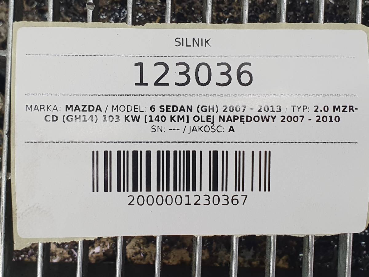 Przedmiot aukcji: SILNIK KOMPLETNY RF7J MAZDA 6 II GH 2.0 MZR-CD 140