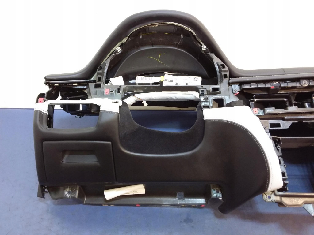 Opis: Skóra pełna \\\\ Merino/silverstone 2\\\\ (X3A9), Wyświetlacz przezierny (HUD), z pasami bezpieczeństwa kierowcy nr oe 7384669, i pasażera nr oe 7384674, z poduszką powietrzną kierowcy nr oe 3074997, z poduszką pasażera nr oe 9252310, z sensorem airbag nr oe 6882266, z modułem airbag nr oe 6837359,z pasem bezpieczeństwa tylnym prawym nr oe 7343642, z pasem bezpieczeństwa tylnym lewym nr oe 7343641 -jakość A && BMW X5M F85 F15 DESKA KONSOLA PODUSZKI SKÓRA HUD