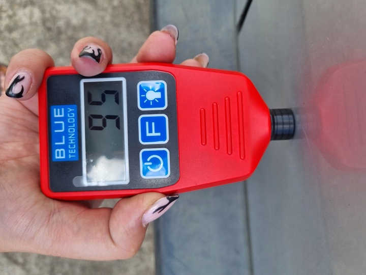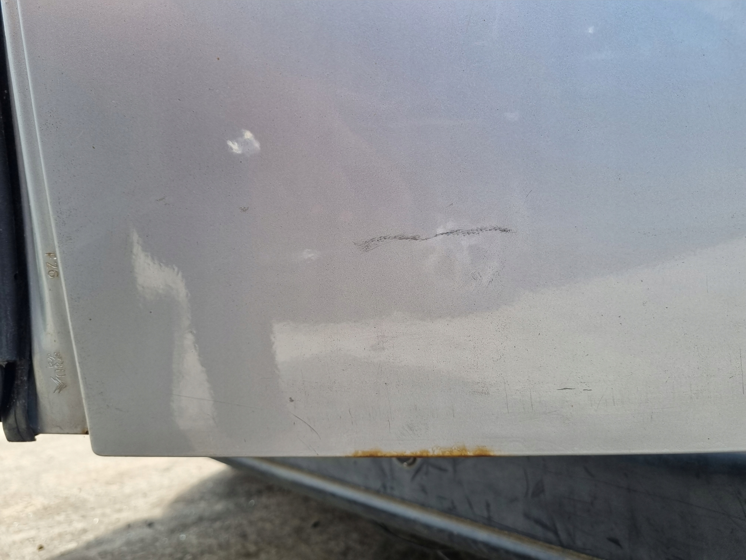Drzwi posiadają niewielki ubytek lakieru, drobne ryski, małą wgniotkę oraz oznaki korozji (w dolnej i wewnętrznej stronie) - widoczne na zdjęciach.