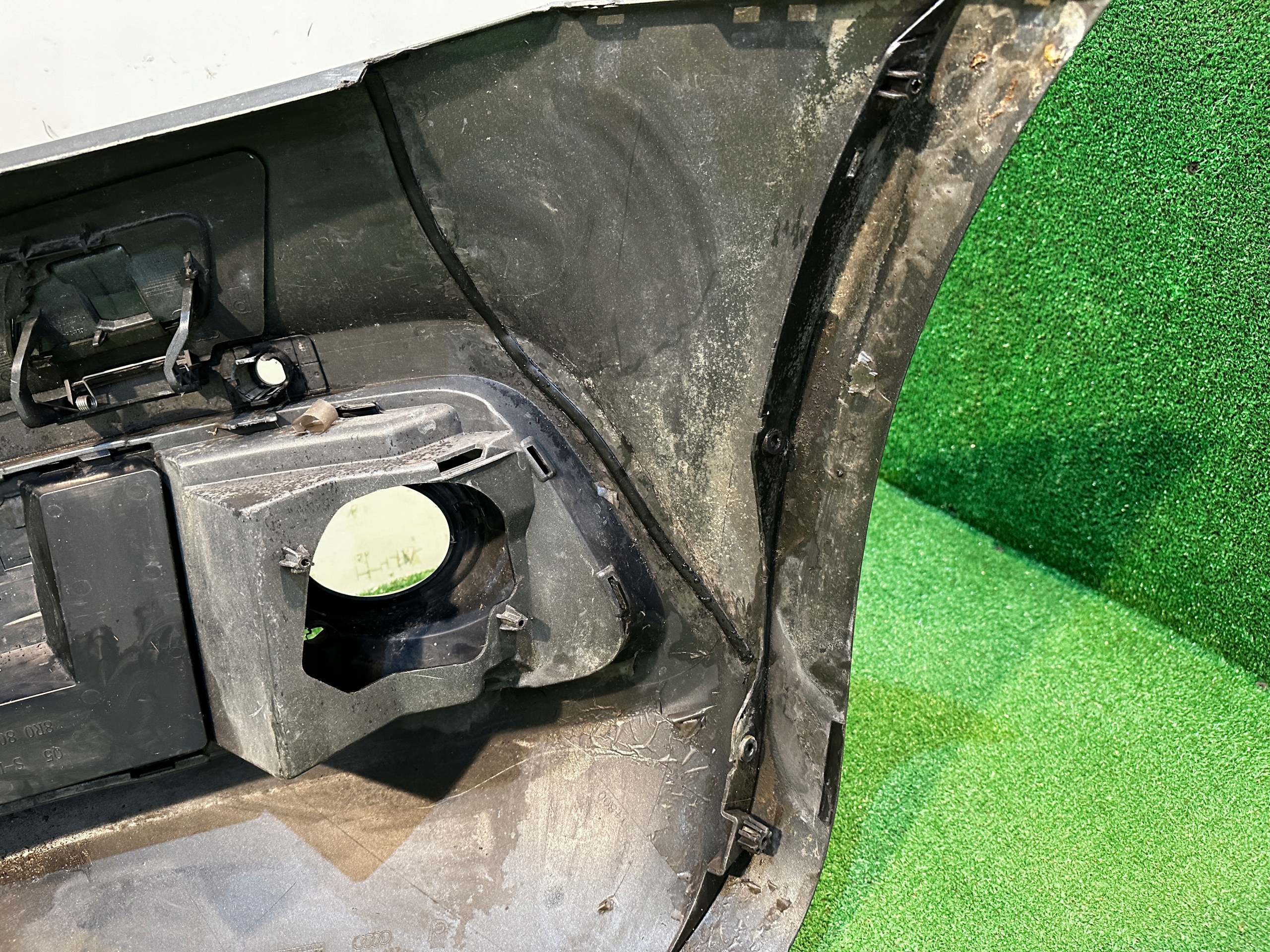 Zderzak zadrapany i naprawiany w miejscach widocznych na zdjęciach. Grill w stanie widocznym na zdjęciach. Wymaga ponownego lakierowania.