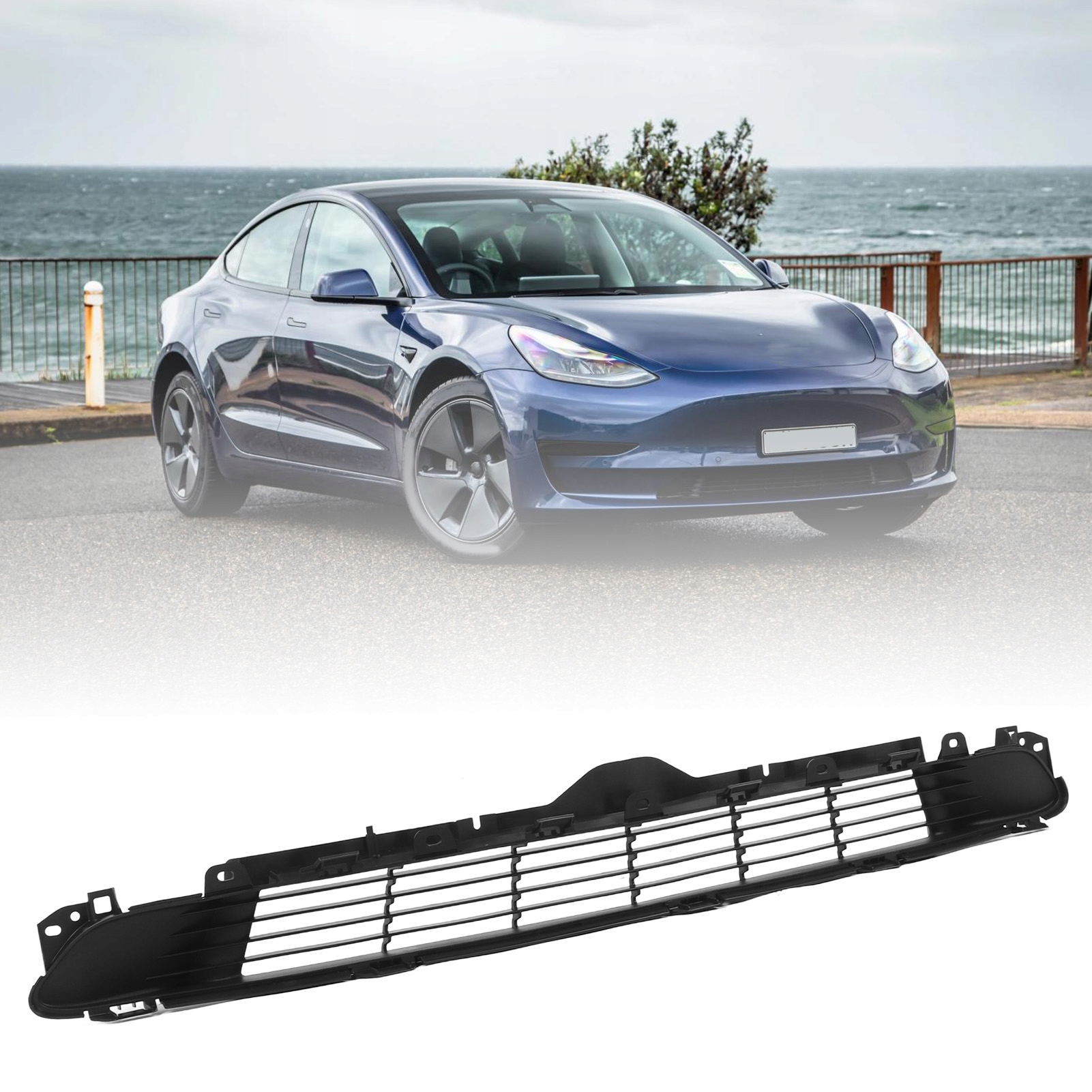 Cecha: 1. WYPOSAŻENIE POJAZDU: Zamiennik Tesli Model 3 2017-2023. Popraw wygląd swojego pojazdu dzięki tej wysokiej jakości dolnej osłonie chłodnicy przedniego zderzaka.