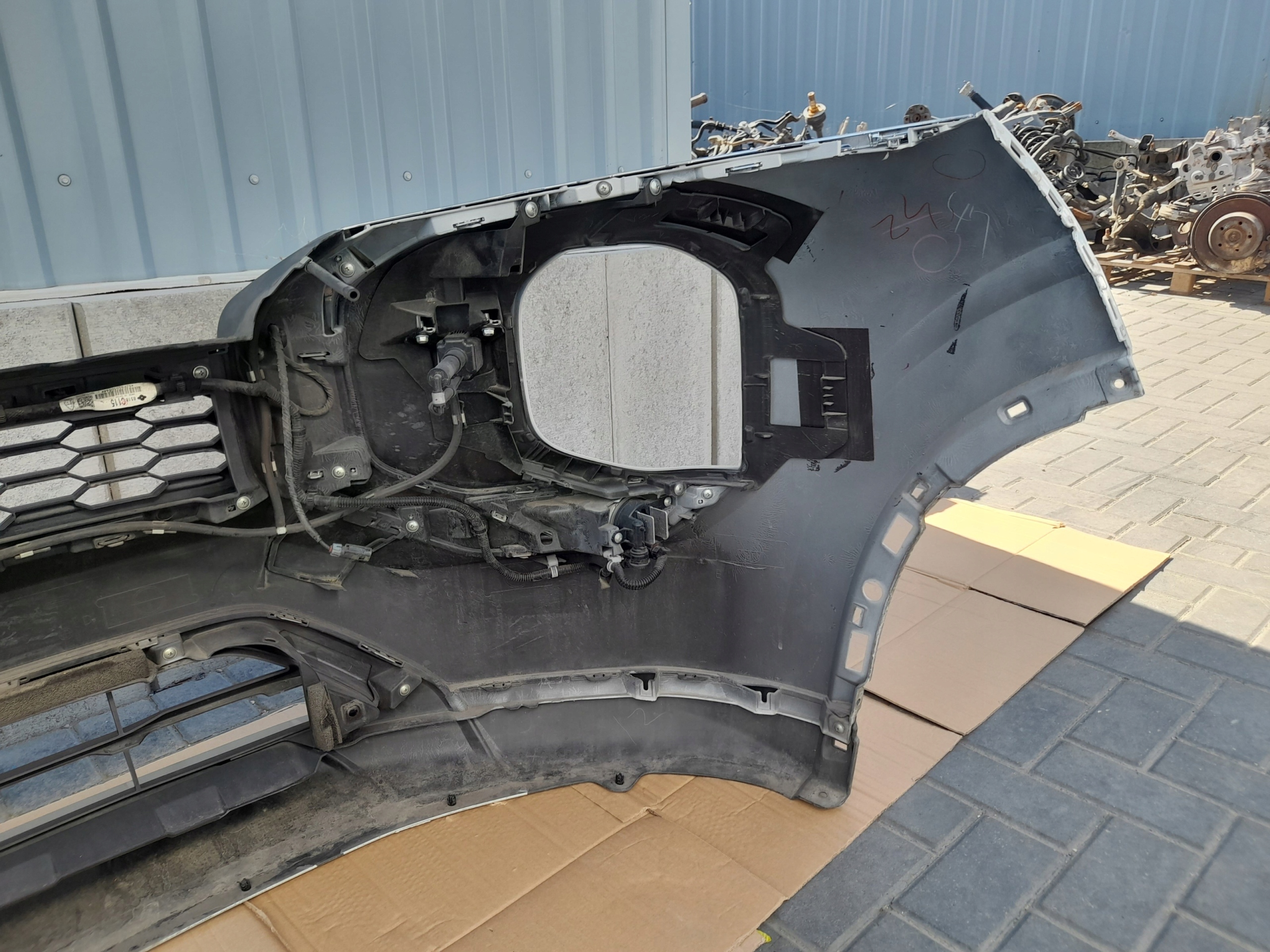 Aukcja dotyczy kompletnego zderzaka przedniego z wiązką oraz kamerą. Brak górnej kratki.