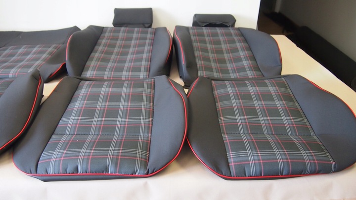 W komplecie tapicerka na dwa fotele przednie z zagłówkami plus kanapa tył oparcie i siedzisko
