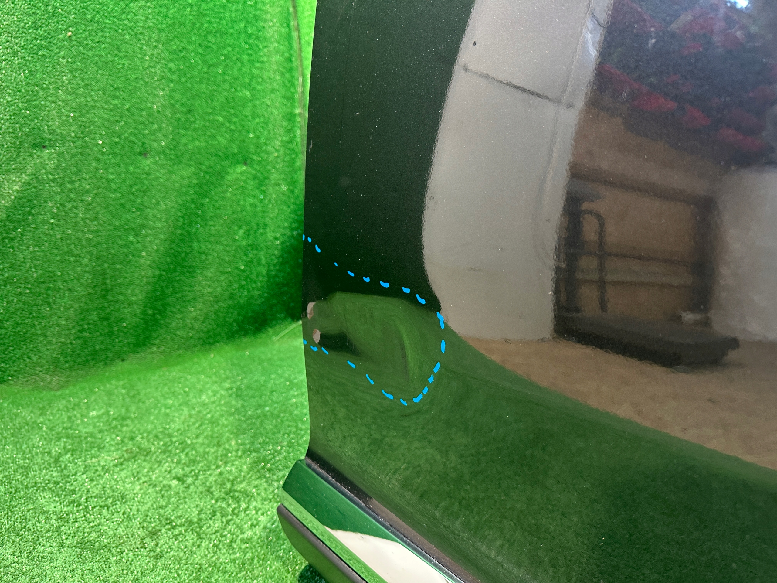 Drzwi ładne, lekko uszkodzone w miejscach zaznaczonych na zdjęciach. Wymagają ponownego lakierowania. Listwa ok.