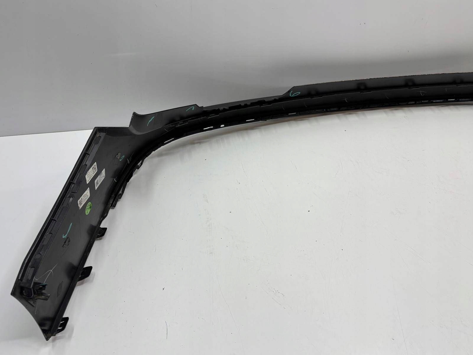 Lucid Air Zderzak Tył Tylny P11-E220H1-03. Zderzak po delikatnej estetycznej i profesjonalnej naprawie nie widocznej na zdjęciu. Zderzak nie wymaga klejenia, szpachlowania lub podobnej naprawy. Wszystkie mocowania całe, nie uszkodzone.