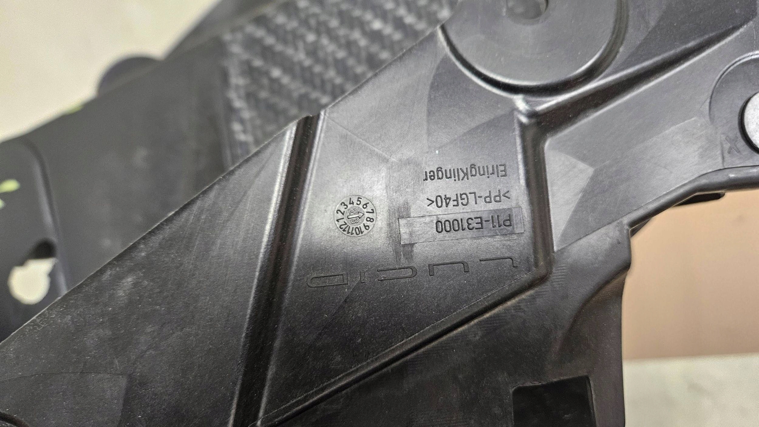 PAS PRZÓD PRZEDNI WZMOCNIENIE LUCID AIR P11-E3100-I2 PAS POSIADA DROBNY UBYTEK W BOCZNYM MOCOWANIU NIE WPŁYWA NA MONTAŻ ORAZ DROBNE NAPRAWY ZAZNACZONE NA ZDJECIACH