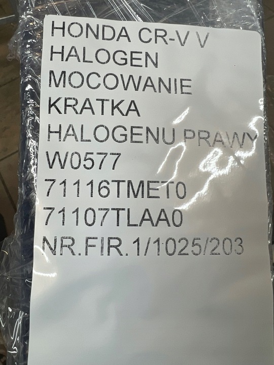 - OPIS Kompletny halogen z mocowaniem oraz kratką, ramką do Honda CR-V V. Komplet jest oryginalny, posiada uszkodzone mocowanie halogenu oraz pospawane mocowanie, wszystko widoczne na zdjęciach poza tym jest w bardzo dobrym stanie.