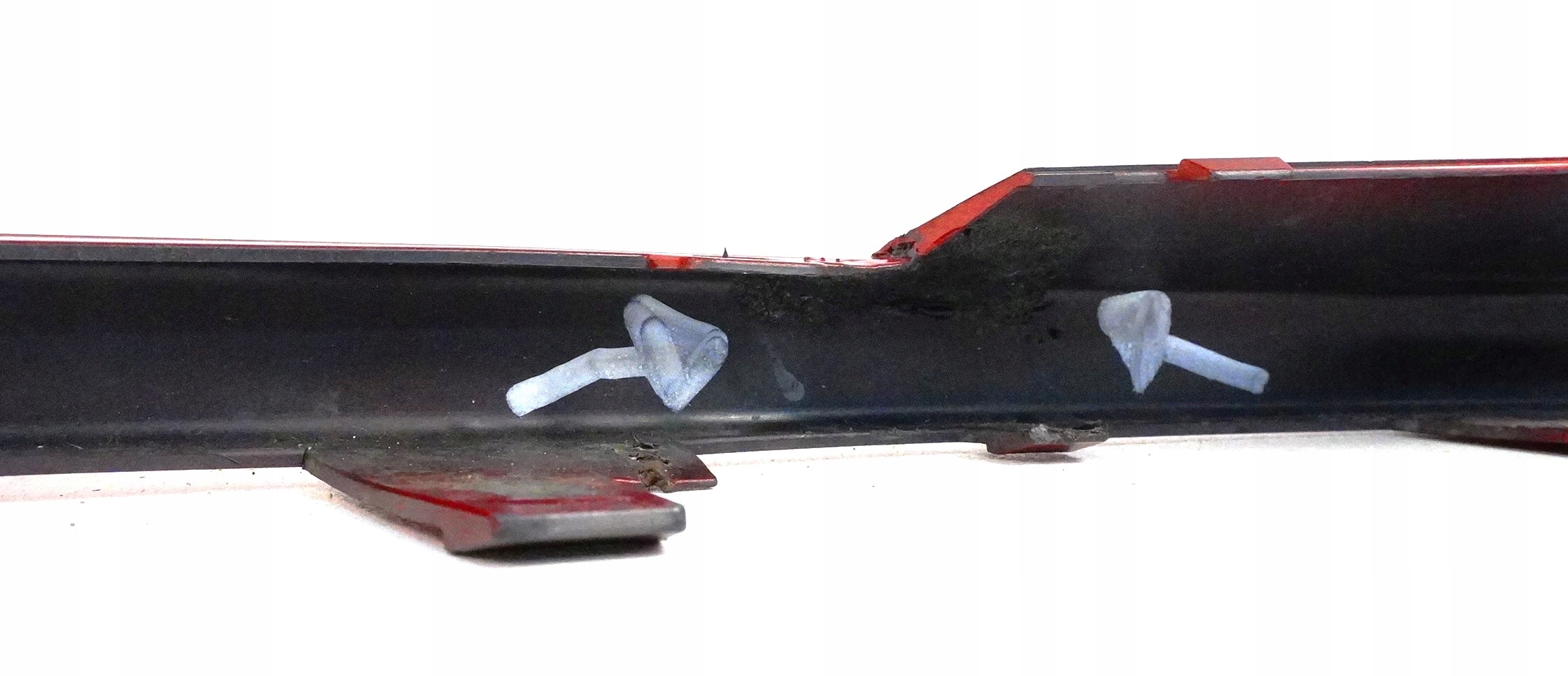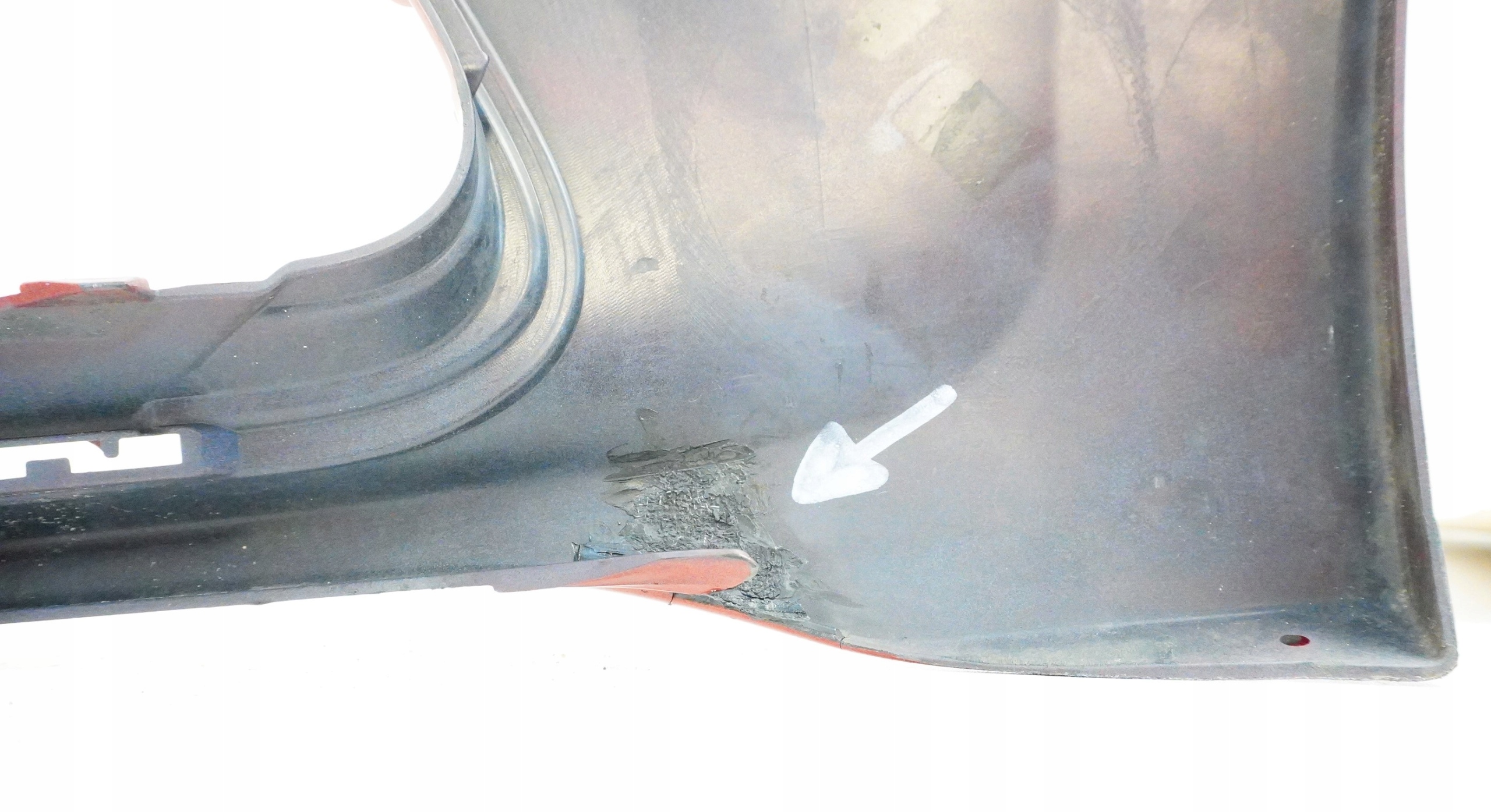 Stan dokładnie jak na zdjęciach - zderzak posiada rysy i dwa naprawione miejsca (zaznaczone białymi strzałkami na zdjęciach).