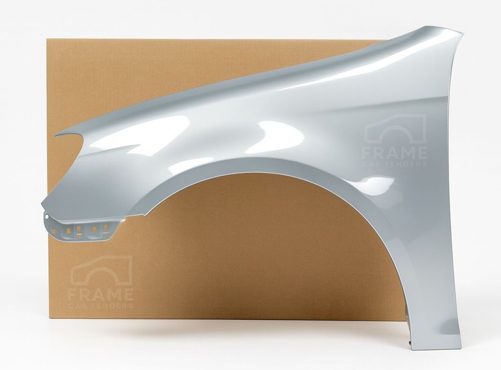 Błotnik stalowy, zabezpieczony antykorozyjnie. W idealnym stanie, z powłoką lakierniczą o idealnym połysku bez uszkodzeń.